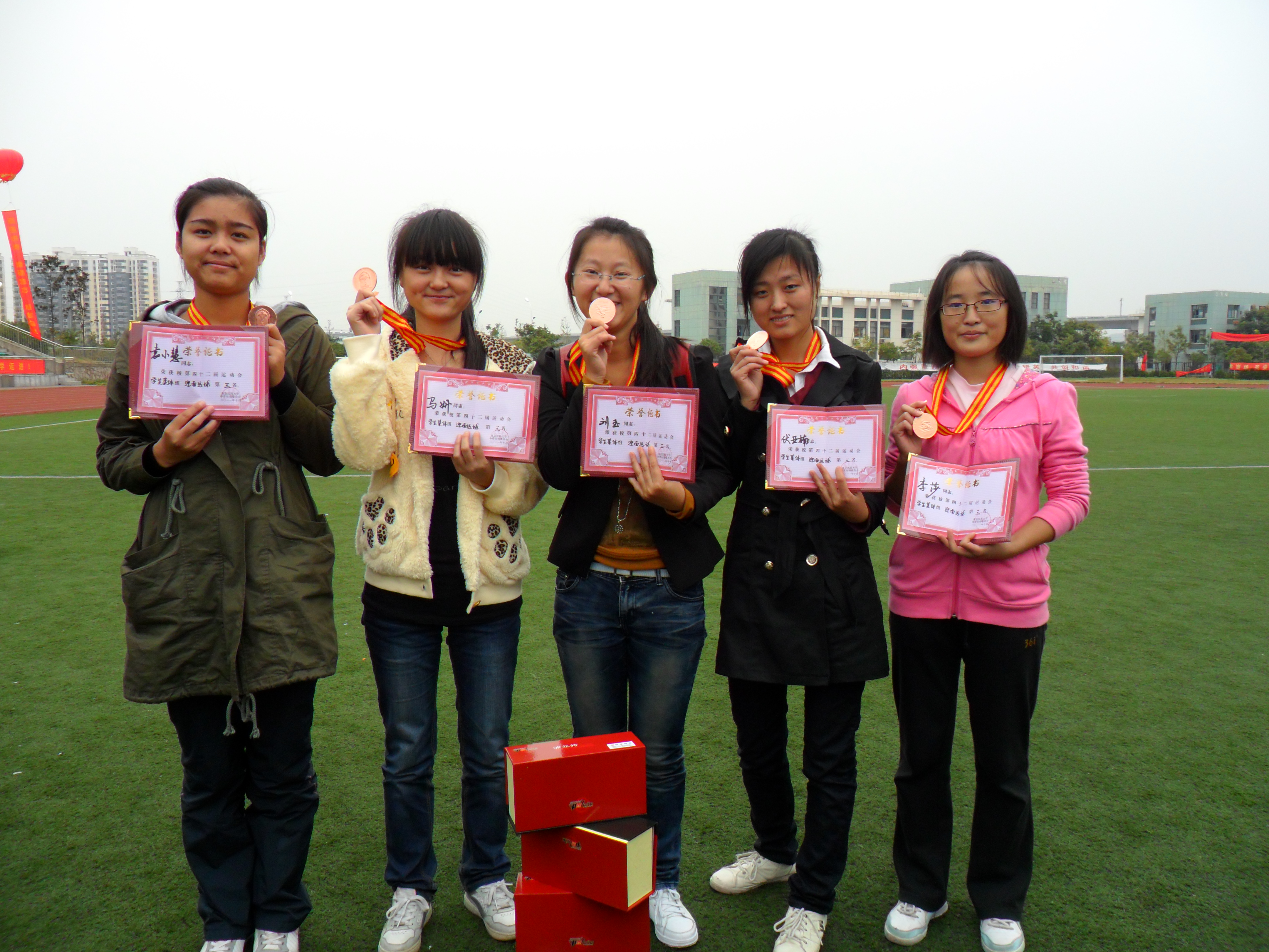 在众多参赛学院中,完美在线官网的健儿们无畏强敌、奋勇拼搏、赛出友谊、赛出素质,体现了“博学慎行,明德兼爱”的院训。最终,我院在本届运动会中获得了体育道德风尚奖及学生组女子团体第三名的好成绩。在众多参赛者中,我院刘星、周林、伏亚楠三名同学分别夺得女子1500米、女子定点投篮、女子定点射门的冠军,为学院争得了无上荣誉。此次运动会中,我院的老师们更是成绩出色,用满腔的热情续写了青春的神话。汪茵、刘晓老师分别在教青组女子800米、定点投篮中获得冠军的殊荣;周滋霞老师取得教青组双手前抛实心球第二名的骄人成绩;王建芬书记取得了教中组女子双手前抛实心球第四名的好成绩。集体项目中,我院学生组女子4乘400接力比赛中取得第五名;在10人50米迎面运球比赛中,我院荣登季军宝座。在各项比赛中,我院健儿们沉着冷静、淋漓尽致地展现了我院师生奋发图强的精神风貌。
