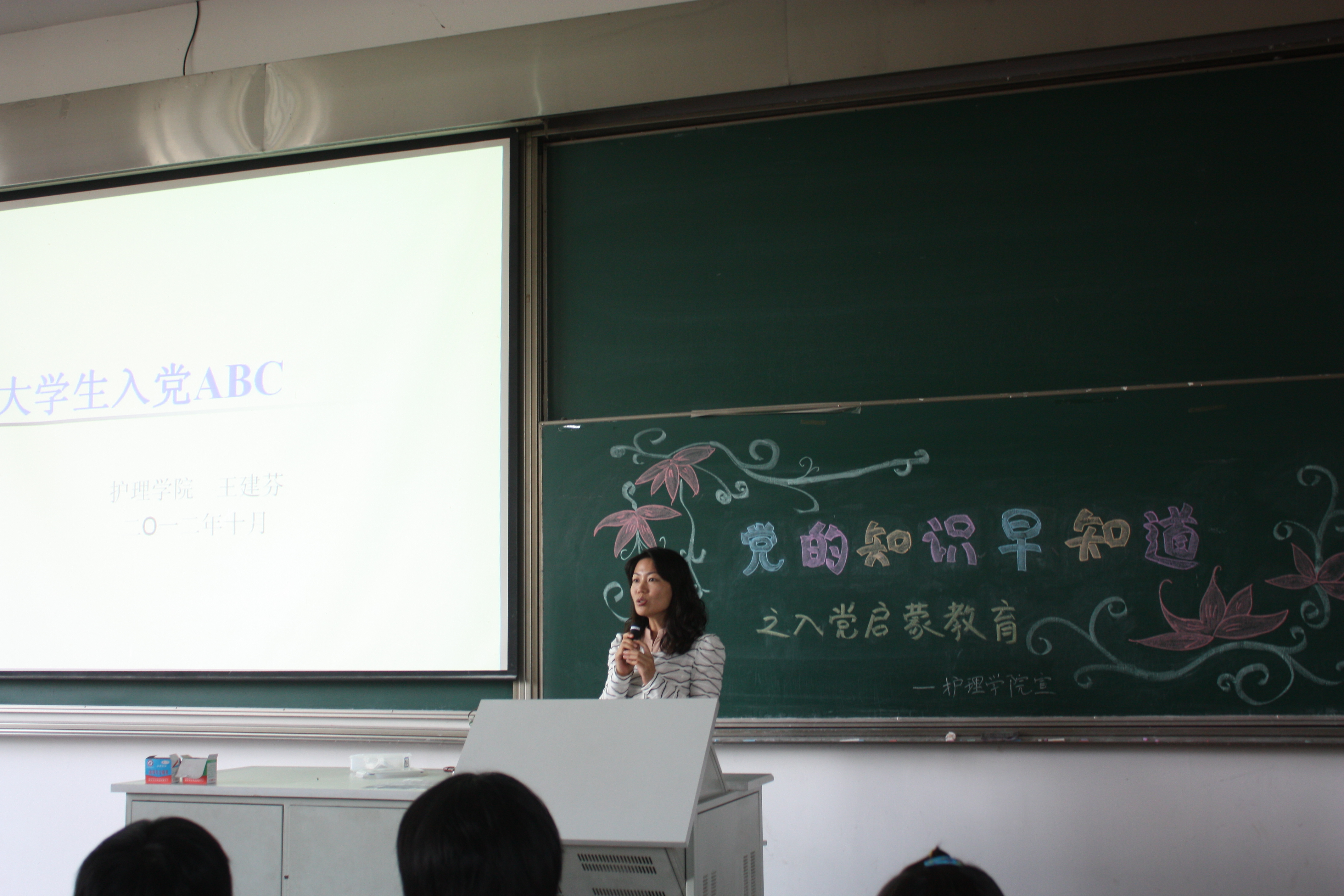10月12日上午9点15分,完美在线官网在第三阶梯教室为2012级新生进行了入党启蒙教育。本次讲座主讲人是我院党总支副书记王建芬老师。