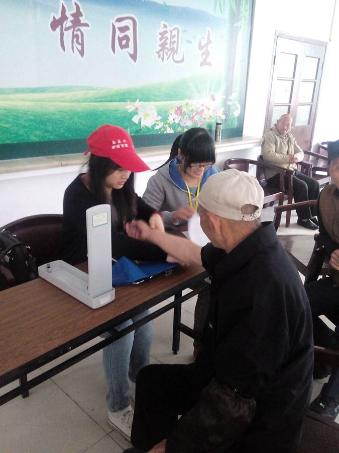 老人们似乎是太长时间没有和人谈心了,他们把我们当成自己的家人,诉说着自己的心事。有的老爷爷年纪很大,是参加过战争的人,他们滔滔不绝地向我们讲述着自己的参战经历。感受到我们的崇拜,他们就会很自豪地笑笑,然后继续讲述着。还有一位老爷爷因为年纪大了,说话不是很清楚,但是他还是一直和志愿者讲着属于他的故事,虽然我们都听不清他讲了些什么,但是我们只要对着爷爷笑,对着他点头,他就会继续笑着和你谈心。还有好多老人让志愿者们帮他们量血压,对于志愿者的嘱咐,他们就像个孩子一样认真地听着,测量结束了之后他们都会不断和志愿者说谢谢。其实,老人们真的更像个孩子,他们的内心很害怕孤独和寂寞,但同时他们也很容易满足,只要你真心地对他们好,哪怕只是做一个倾听者,他们就会毫无保留地对你!