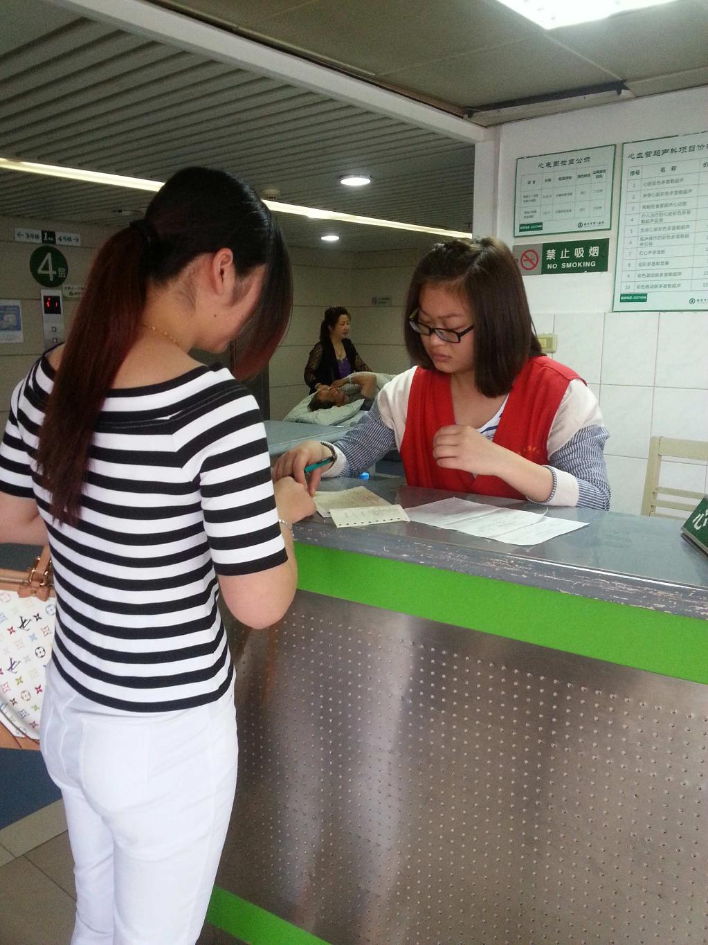 志愿者们刚到的时候医院里就诊的病人还不是很多,被分配在导医台为患者指路的同学虽然工作有点无味,但仍充满激情和耐心。他们遇到不懂的问题就向带教的护士姐姐请教,很快,他们就可以自己去解决一些问题了。来医院就诊的患者也慢慢认可了他们,在得到解答以后,都会说一句谢谢,听了之后让人觉得心里暖暖的,同时也有一种被认同的感觉。每一位志愿者都在自己的岗位上努力地工作,他们忙于转角服务,内外科服务,电梯服务等等,脸上挂着微笑,用真心真情帮助来求医的病人们。他们为自己能够为医院,为患者提供一丝帮助而欢心雀跃。