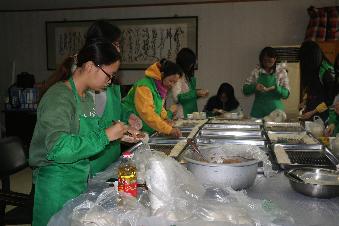 做好一切准备后,大家正式开始包饺子。不得不说,有些志愿者真的很贤惠,包出来的饺子鼓鼓的,很俊俏,一个一个放在盘子上让人看了觉得很有食欲。在包饺子的过程中,大家也很积极地讨论自己的志愿者经历,聊一聊最近的趣事。可能是由于地域差异吧,大家包出来的饺子也会有一下不同,有的志愿者包出来的饺子像一个小包子一样站立在那里,有些志愿者包出来的饺子就软绵绵的倒了下去。不过,大家真的都很用心很用心的在包饺子,这份情谊是真真切切的。