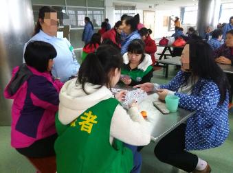 而在三病区,由完美在线官网的志愿者们组成的队伍还没进去,病区里的人就已经兴高采烈地欢呼了:“你们来了啊!”“快看,那些志愿者又来了!”喜悦之情满满地从窗子的另一面溢了出来,不禁让前来的志愿者们备受感染,心里暖暖的。原来,她们一直都知道身边的人对她们的关爱,在那么多人中,她们一眼就认出了——志愿者们!带着满满的欢欣,志愿者们和她们打牌、下飞行棋、看书、写毛笔字、画画……志愿者们还与病人们倾心交谈。游戏,输了,她们宽慰志愿者,画画,她们画得不好,然而志愿者的一句鼓励,一句赞赏,瞬间又使她们欢欣雀跃了起来。