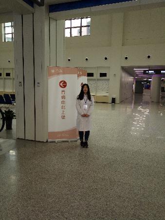 我们的志愿时间是下午1:30到5:00,在这三个半小时的时间里,我们一直坚守岗位,为患者及家属提供各种帮助,介绍医院相关环境。许豆豆、刘雪莲在大厅门口引导,郝雷雨和夏静雯在一楼二楼大厅接待,顾梦颖在扶梯拐角指引。
