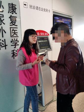 杨林林同学在三楼采血处认真负责,作为小队的领头人,她必须全面的了解医院的结构,以便给带领的队伍提供正确完善的信息,对待询问的病人和家属,耐心友善,为志愿者们树立了良好的榜样;张传影同学在三楼的自助打报告机处为大家服务,因为机器时常出故障以及取报告的人数过多,她一直都很忙碌辛苦,但是她仍然坚守岗位,不曾偷懒懈怠,是一名优秀的志愿者;车畅同学在二楼药房的刷卡处提醒并帮助大家刷卡等待取药,虽然工作枯燥无味,取药者众多且无序,车畅依旧真诚的服务他们,协助他们排队刷卡,耐心等待叫号……