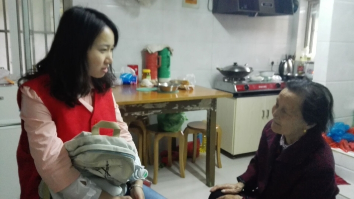 58日早上,南医大完美在线官网15级的5名同学相伴去了江宁区的殷巷新寓小区。虽然由于种种原因,大家只能服务一个学员——戴安珍奶奶,但志愿者们是不会有任何懈怠的。