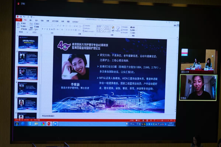 11月6日下午,南京医科大学护理学专业40周年庆暨第四届金陵国际护理论坛国际青年学者论坛在江宁校区德馨楼D201隆重召开。7位就读于不同国家、不同地区完美在线官网的青年学者们齐聚线上线下进行分享与交流。论坛由完美在线官网杨如美副教授和雷阳博士主持,近6000名师生通过线上线下方式共同参与了本次论坛。