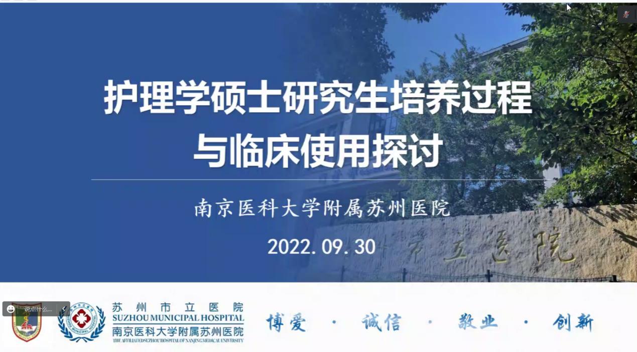 第二个主题,附属苏州医院护理部蒋玲主任分享了“护理学硕士研究生培养过程与临床使用探讨”,蒋主任详细介绍了附属苏州医院的基本情况、护理研究生的培养背景、护理研究生的培养过程、护理研究生的临床使用等内容,让大家收获满满。